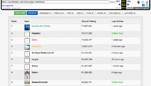 I think it would be very nice to have the "Last Online" column back on the leaderboard, and maybe even to have it combined with the website's last online time — i.e. use the more recent of the two times to show as the "last online" time in both locations.