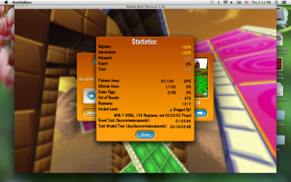 The only things standing between me and completion of MBP are the 25 Expert levels. But I'm probably going to take a bit of a break from the game. I'll still be checking out the forums on occasion, though.