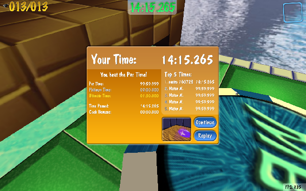 Just tried out the level, and if you think this level is easy, let me tell you are wrong. The first attempt I got was less than 15:00.000! Quite embarrassing that I'm a noob at spinning. XD