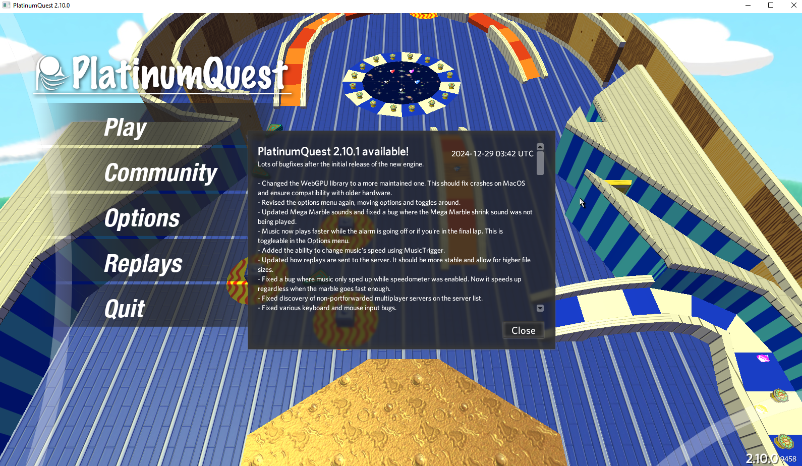 People have been talking quite a bit about the feature where the music speeds up if the marble goes above a certain speed, since many people haven't seen that before. It used to be a Mac only feature when PQ launched in 2017. Then, after some update (no idea when), the feature went away even on Mac. Now, with PQ 2.10, this happens on Windows only, and not on Mac. I hope the feature makes its way back to Mac at some point.