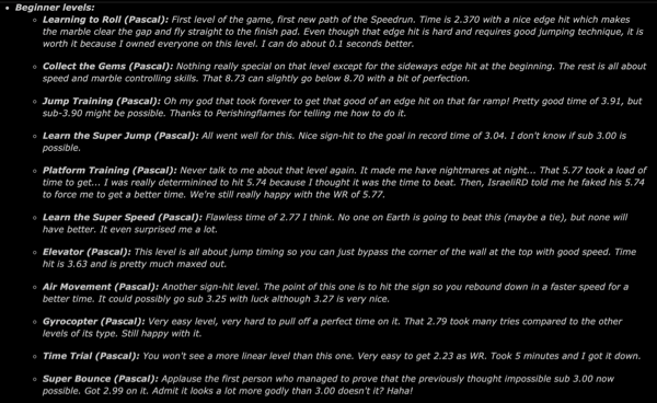 Marble Playground 27.919 - I wasn't expecting this path to get sub-28 at all. The path is ''easy'' to perform compared to the previous one, but kind of unimpressive to watch. Regislian posted a TAS path (for now) that could give you a 27.4x or 27.3x and it's ridiculously hard to pull off...