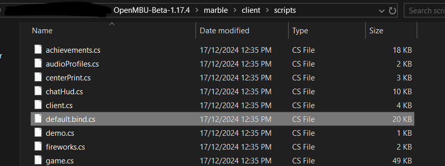 Find the "default.bind.cs" file, which should be under "\marble\client\scripts"