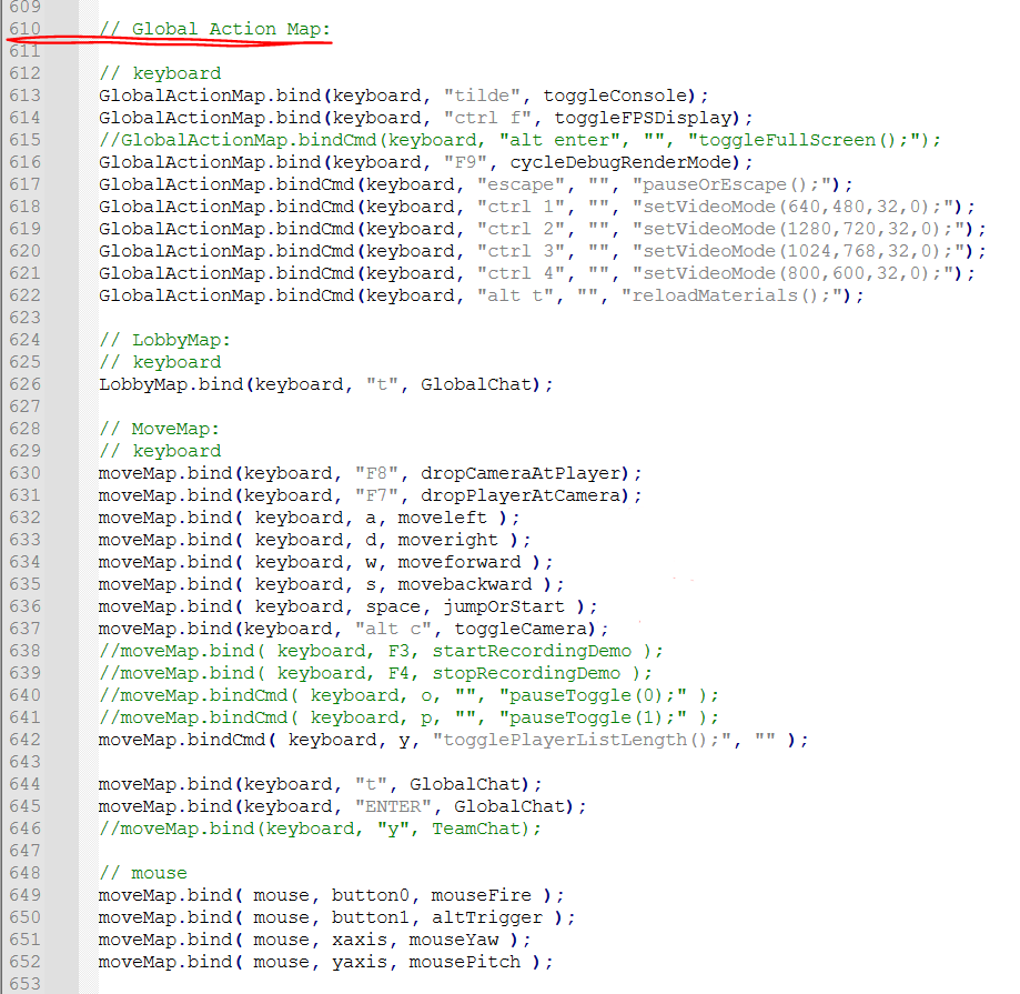 Next, open the file using a text editor (Notepad++, Visual Studio, either or.) and scroll all the way down to line 610, that's the line that contains general controls (keyboard or controller)