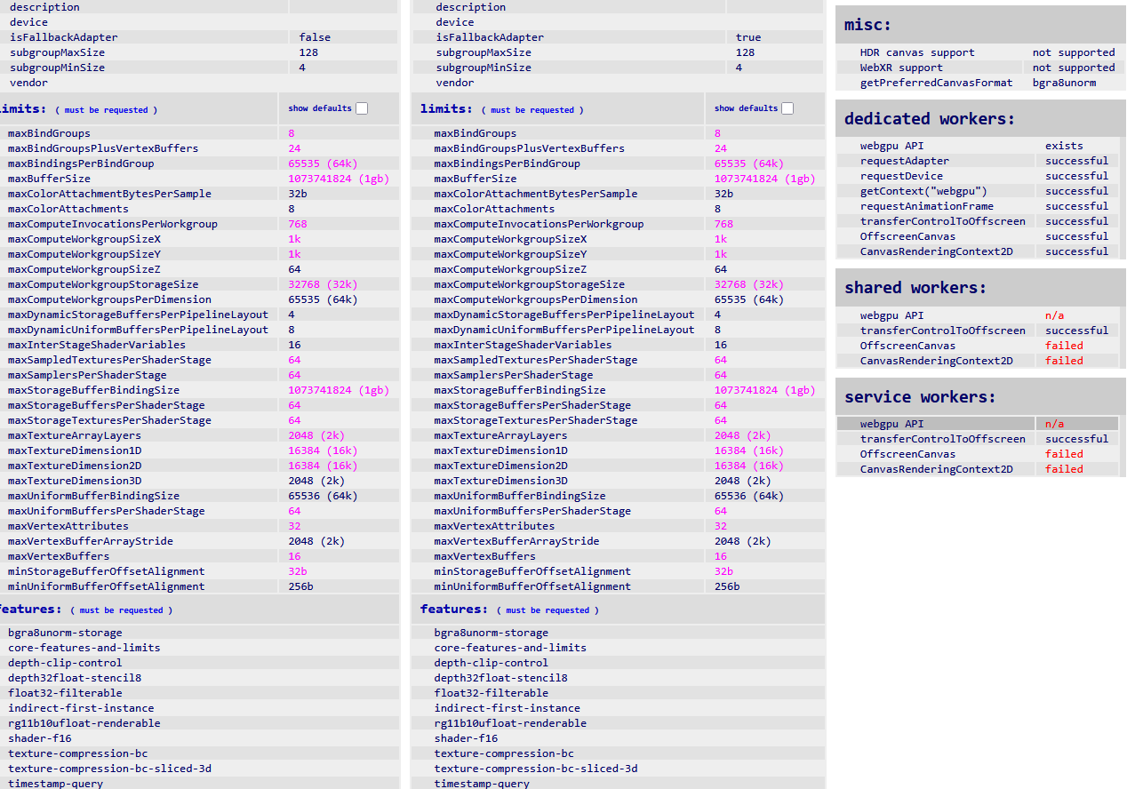 Then, could you send a screenshot of what the following page outputs: webgpureport.org