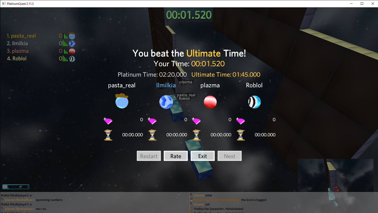 Hi PQ Team, i had a bug when me, roblol, plazma, and pasta_real plays multiplayer coop on a level called Arkanoid, and we accidentally set a world record because of this bug:
