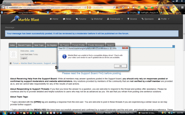 I tried downloading the old Marble Blast Gold from this website. When I tried to launch it, I saw an error message saying "Hardware failed to switch to the specified mode". Does anyone know a remedy to that?