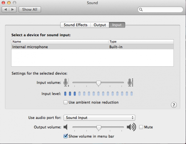 In your second picture you show the Input panel. What happens if you turn the input volume all the way down?