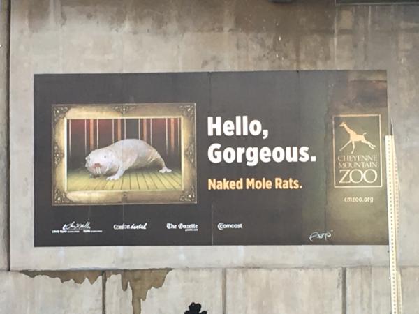 This is an ad for the Cheyenne Mountain Zoo posted near the Penrose Library in Colorado Springs, Colorado.