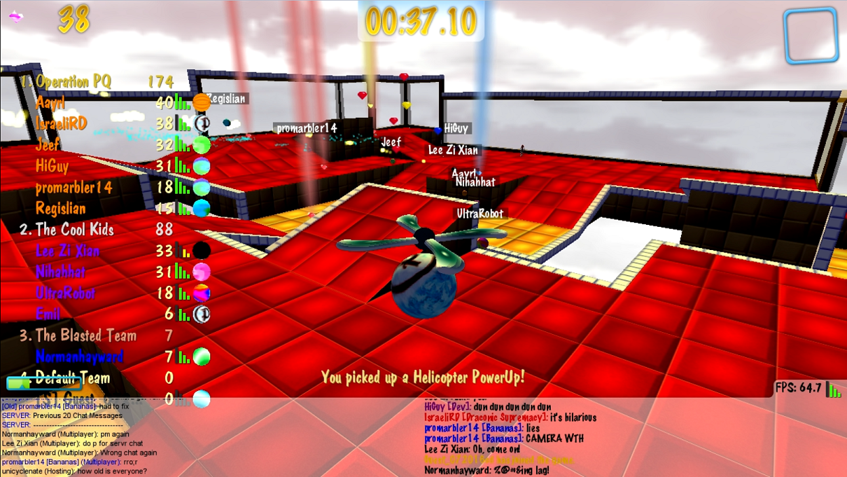 For those that missed our extremely exciting event last night, we had several members of the Marble Blast Staff face off against members of the community in several epic rounds of Team-Mode Multiplayer Matches! IsraeliRD and HiGuy were kind enough to record one of these matches for us for your viewing pleasure! I guess it helps to have the entire Marble Blast Staff on a Skype call, right?