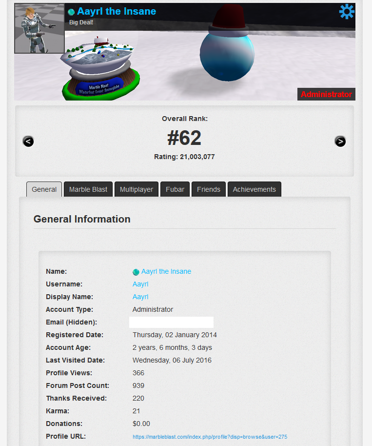 Remember back in August of 2015 when we added Profile Banners and status updates to your Marble Blast Website profiles? Do you also remember when I promised additional features would be added in the near future? Well, better late than never, or so they say..