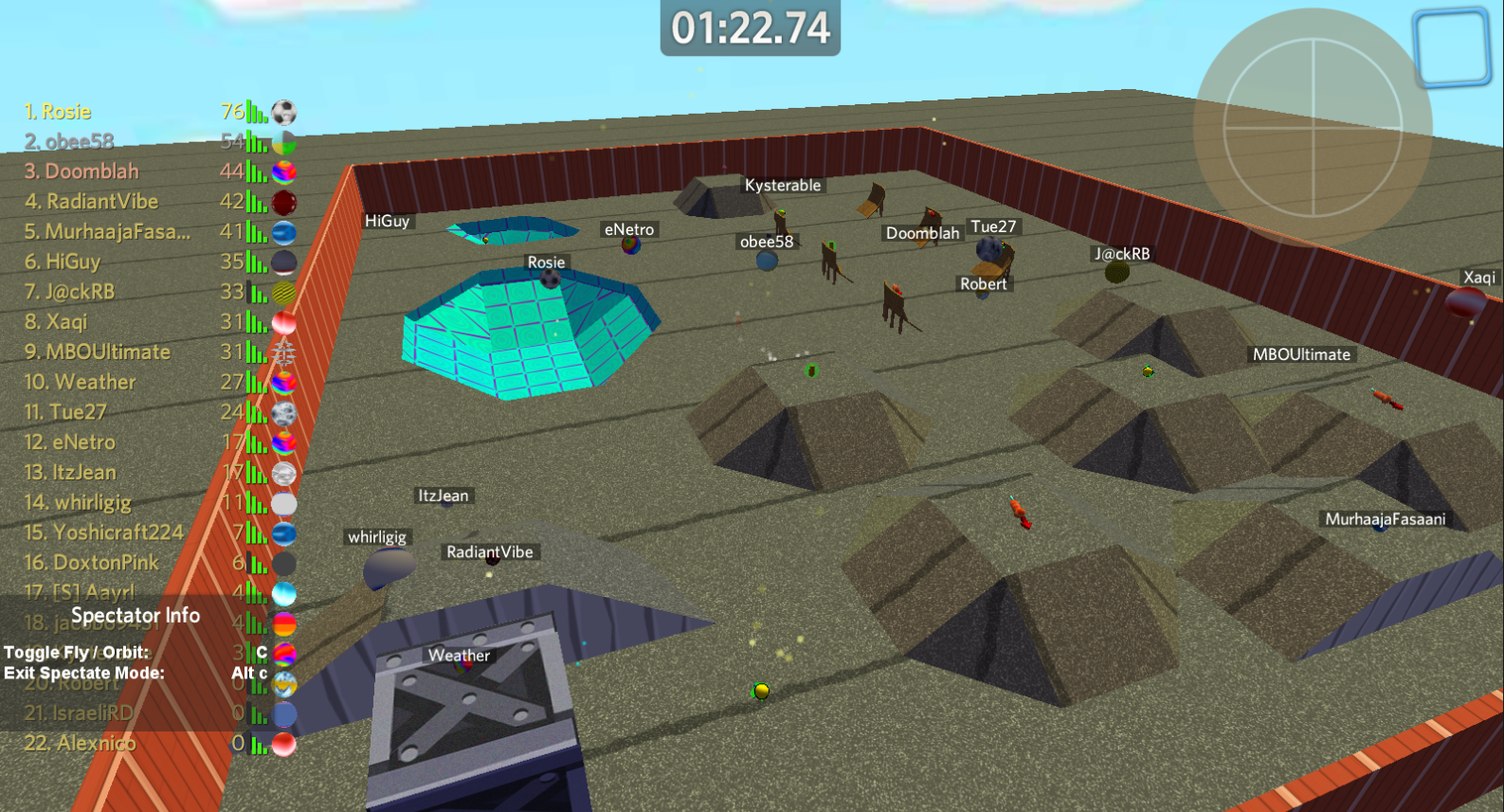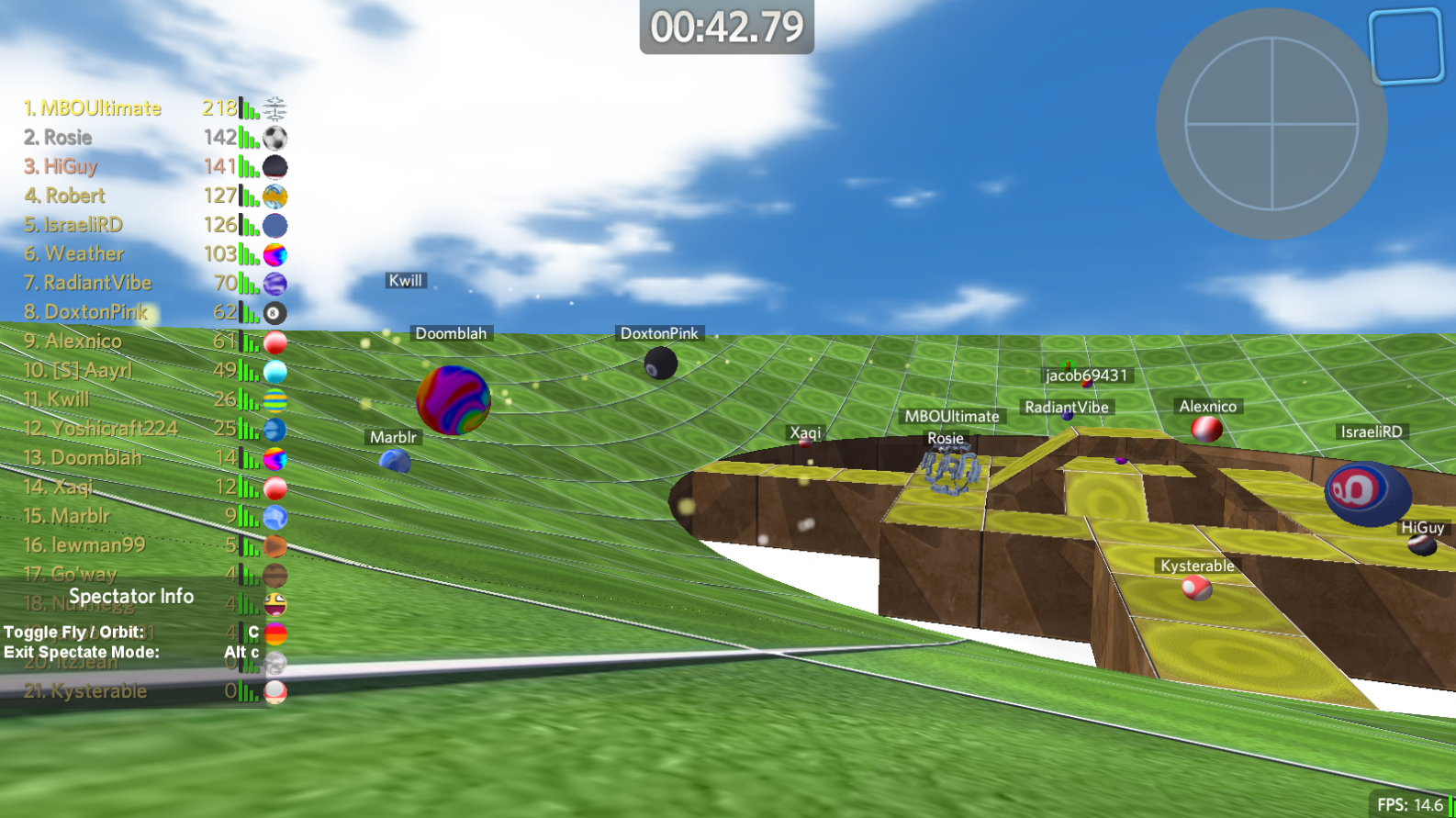 Players having a grand time on a Mega Marble War version of King of the Ring