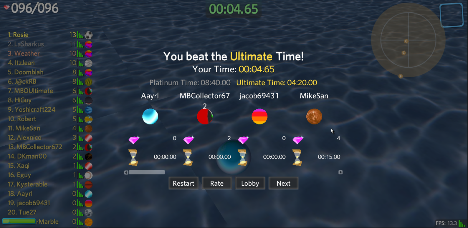 Thank you again for everyone that was able to join us for this year's Labor Day Madness celebration! We gave our servers quite the assault this afternoon, and we even identified and ironed out some deficiencies in our code base to further improve the performance and stability of Marble Blast!